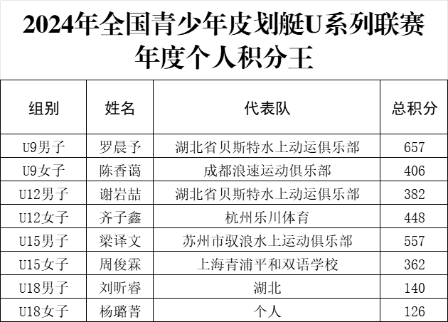 2024年系列赛事已圆满收官,2025年赛事将于明年春天重启。全国青少年皮划艇U系列联赛致力于为中国青少年皮划艇爱好者打造顶级成长平台和奥运冠军摇篮,让中国真正成为水上运动、皮划艇项目的强国。